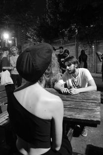 Dialog start with a participant question then after the artist answers it, it is his turn. There are three questions for every participant as well as for an artist. After three rounds, the artist leaves the chair, so his place is available for the public to participate. So strangers can rotate and speak with each other. There are no limits to questions topics, no matter how provoking or personal they are. This performance has two forms, private and public. In a public form, guests can experience those dialogs and participate. In a private, there are no spectators. Only two people talking. If there are different language speakers in this perforce there is a translator to help make communication possible.